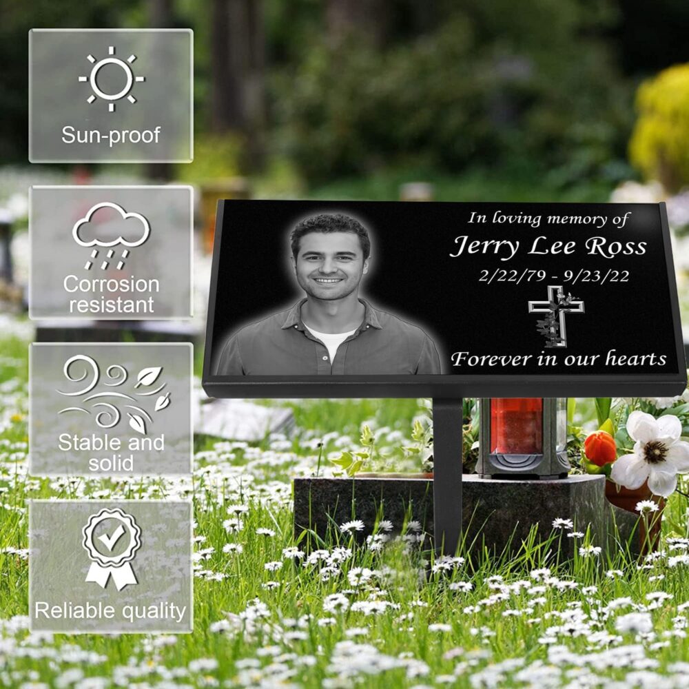 • Personalized Memorial Stones,headstones for Graves,Grave Markers for Cemetery for Humans,Black Granite Headstone,Grave Marker,Cemetery headstones,Outdoors Grave Plaques